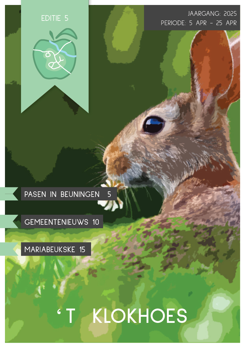 Bekijk hier de laatste publicaties van het Beuningse Dorpsblad ’t Klokhoes. In het dorpsblad vindt je onder meer columns, nieuwsartikelen, gemeentenieuws, spelletjes, andere nieuwtjes en natuurlijk het Mariabeukske (Parochieblad).